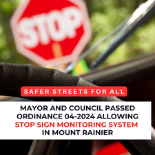 As the City continues to enhance road safety and achieve zero deaths and injuries on our roadways, the Mayor and Council passed Ordinance 04-2024 amending the City’s Code to allow stop sign monitoring systems in the City.  The amendment follows the Maryland Legislature passage of HB364, which permits stop sign monitoring systems within school zones in Prince George’s County starting after July 1, 2024.